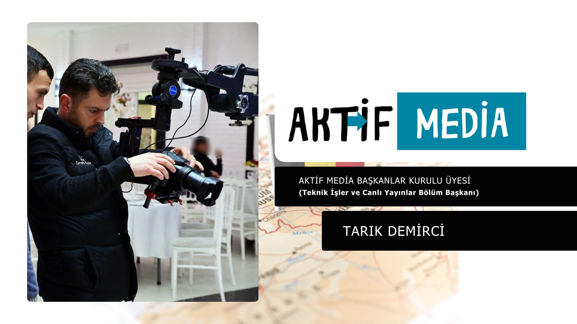 Tarık Demirci: Teknik İşler ve Canlı Yayınlar Bölüm Başkanı Aktif Media Başkan Yardımcısı, Teknik İşler ve Canlı Yayınlar Bölüm Başkanı PROJELER: @EuropaStudio Paylaş Facebook LinkedIn WhatsApp Telegram E-Posta ile paylaş